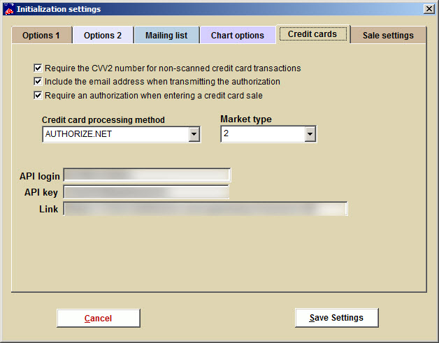 Wintix 6: The Initialization Menu – Credit Cards Tab