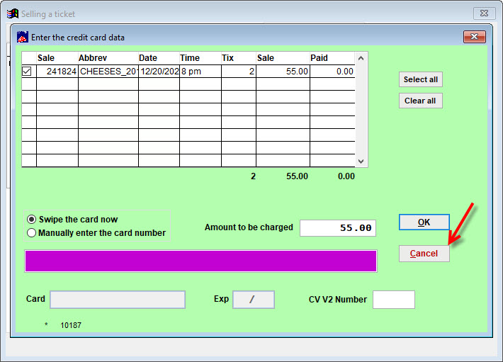 Scan bar coded tickets